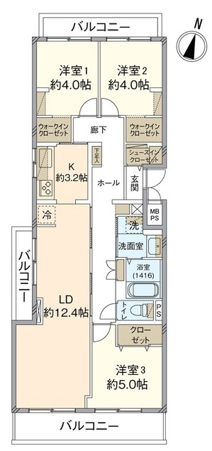 | 専有面積 | 壁芯 84.66u(約25.61坪) バルコニー 17.22u |